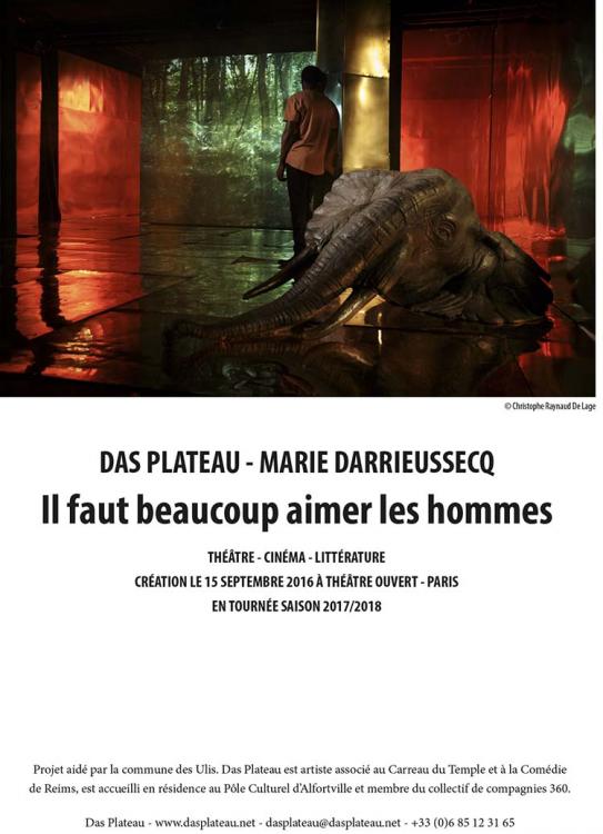Son nouveau roman, Il faut beaucoup aimer les hommes, montre un écrivain qui bouscule l'imaginaire dans une confrontation de « races » et de classes sociales. L'Afrique est présente – et c'est une réjouissance de voir enfin la littérature « franco-française » porter un autre regard sur le continent noir, hors des lisières du « sanglot de l'homme blanc » décrié par Pascal Bruckner. Darrieussecq n'est-elle pas, au fond, « une écrivaine africaine » par ricochet, elle qui a vécu au Cameroun ? Solange – personnage déjà présent dans Clèves – est devenue une comédienne française, sinon la Française de service, dans le monde très fermé de Hollywood où elle côtoie des célébrités comme George Clooney et tourne avec de grosses pointures (notamment Matt Damon). C'est au cours d'une soirée chez Clooney que Solange rencontre Kouhouesso, un acteur noir qui joue les seconds rôles et qui rêve d'adapter Au coeur des ténèbres, de Conrad, dans son pays d'origine, le Cameroun.