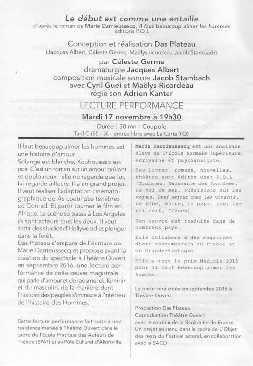 On y retrouve Solange, l'adolescente basque (comme Darrieussecq) de Clèves (le précédent roman). À la trentaine, elle est la vedette frenchie de Hollywood, frayant avec Steven (Soderbergh), George (Clooney), quand elle ne tourne pas avec Matt (Damon). Lors d'une soirée chez George, justement, elle est électrisée par un acteur noir à l'allure mélancolique et altière. D'origine camerounaise, Kouhouesso n'est en Amérique qu'un brillant second rôle, mais rêve de réaliser Au cœur des ténèbres, de Conrad, en Afrique. Il finira par en trouver les moyens, comme il finira par se laisser aimer épisodiquement par Solange. Entre deux éclats contre le racisme ambiant et sa difficulté à trouver ses racines, à comprendre ce que signifie être africain. Histoire d'amour choquante entre une Blanche et un Noir au royaume de l'image et de l'apparence ? Racontant Hollywood, puis le tournage — façon Apocalypse now —, Marie Darrieussecq se joue du roman à clé, mêle fiction et réalité. La fiction domine pourtant. Jusqu'à devenir une espèce de poème suffocant. Ou de tragédie classique. Découpée en cinq actes, et autant de chapitres, telles des scènes, Il faut beaucoup aimer les hommes dépasse les clichés bien-pensants sur l'amour mixte. L'angoisse de blesser l'homme qu'on aime y est juste démultipliée encore.