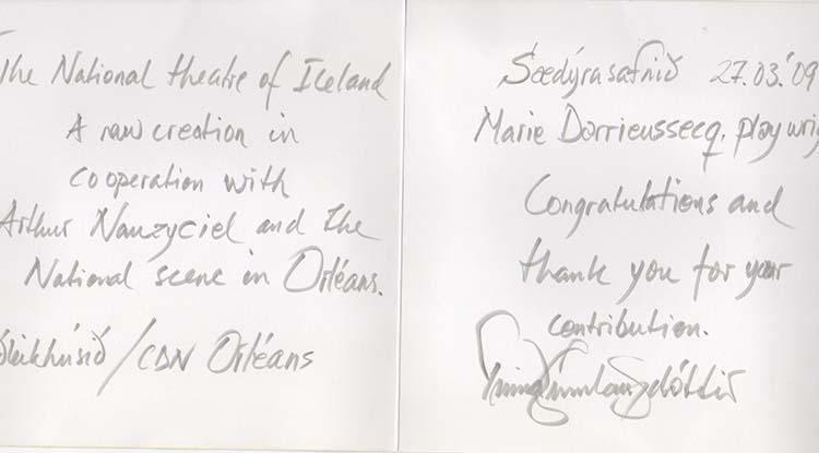 Là, le nouveau est venu à eux, et il a frappé juste. Quand il a commandé une pièce à Marie Darrieussecq (qui avait traduit pour lui Ordet, de Kaj Munk, créé à Avignon en 2008), Arthur Nauzyciel a mis une condition : le texte devait avoir un lien avec l'Islande. Cela tombait bien pour Marie Darrieussecq ; l'auteur de Truismes et de White connaît l'île des elfes depuis longtemps.